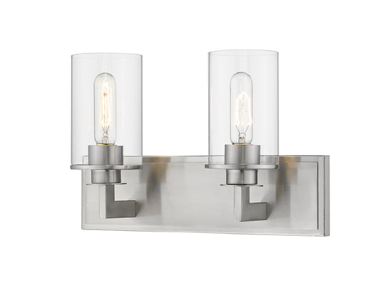 2 Light Vanity The contemporary Savannah family adds sophistication to home décor. The beautifully appointed brushed nickel fixtures are perfectly paired with clear glass shades. This mid-century modern two-light vanity exudes an elegant sophistication. A lux...Regular price $168.00 -