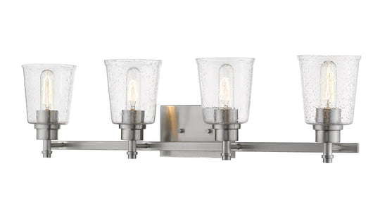 4 Light Vanity The Bohin collection combines clear seeded glass shades with contemporary styled fixtures. Finishes include matte black or brushed nickel. Frame a master or guest bath sink with elegance, and add this brushed nickel...Regular price $246.00 -