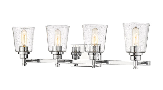 4 Light Vanity The Bohin collection combines clear seeded glass shades with contemporary styled fixtures. Finishes include matte black or brushed nickel. Frame a master or guest bath sink with elegance, and add this chrome four-light...Regular price $254.00 -