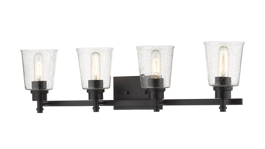 4 Light Vanity The Bohin collection combines clear seeded glass shades with contemporary styled fixtures. Finishes include matte black or brushed nickel. Matte black offers a bold finish to the steel frame of this four-light vanity...Regular price $230.00 -