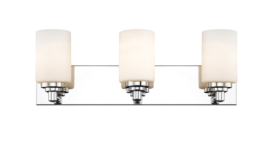 3 Light Vanity The clean lines of the Soledad vanity collection use white opal glass shades on chrome or matte black full sized wall plates to create a contrasting design. The fixtures are available in 1...Regular price $170.00 -