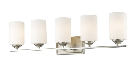 5 Light Vanity --- The circular base and the waterfall arms of the Bordeaux family is modernized by the soft matte opal shades which is paired with bronze fittings. Specifications Style Number 435-5V-BN Install PDFs 435-5V-BN.pdf...Regular price $264.00 -