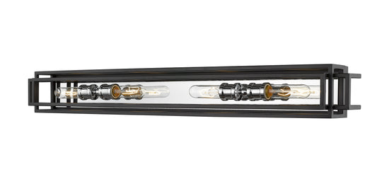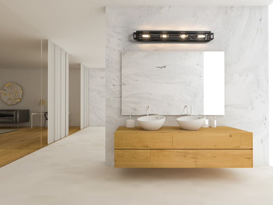 4 Light Vanity Unique rectangular designs create the striking look of the Titania collection. Perfect for any transitional decor, the fixtures use unique contrasting finishes which include a Black frame with inner fittings of Brushed Nickel,...Regular price $364.00 -