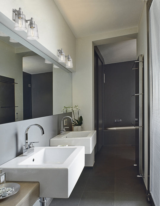 2 Light Vanity The Bohin collection combines clear seeded glass shades with contemporary styled fixtures. Finishes include matte black or brushed nickel. The heady effect of clear seedy glass brings a romantic touch to this brushed...Regular price $142.00