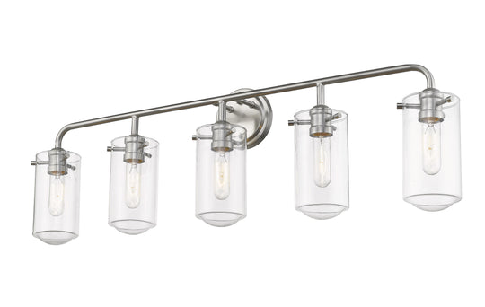 5 Light Vanity Vintage detailing and modern styling mix to create the Delaney collection. Clear drop glass shades are paired with vintage industrial detailing and finished in your choice of either Matte Black or Brushed Nickel....Regular price $248.00