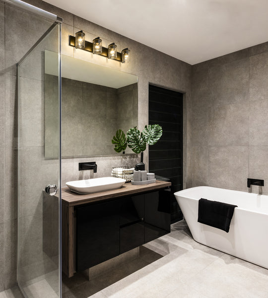4 Light Vanity Classically simple, this transitional design is perfect for today’s home. The graceful rectangular arms gently curve to support the clear seeded glass shade. Offered in a choice of Matte Black, Brushed Nickel, and...Regular price $272.00 -