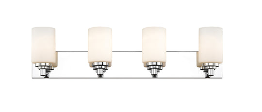 4 Light Vanity The clean lines of the Soledad vanity collection use white opal glass shades on chrome or matte black full sized wall plates to create a contrasting design. The fixtures are available in 1...Regular price $212.00 -
