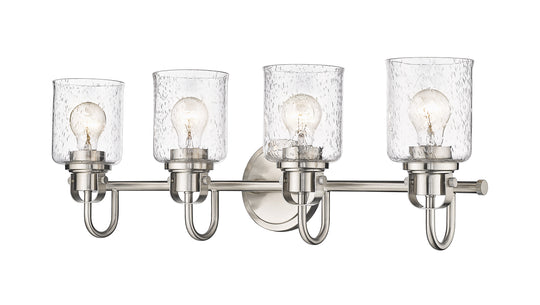 4 Light Vanity The industrial-inspired Kinsley Collection of pendant and vanity fixtures uses simple, artisanal detailing to create a timeless statement. The vintage-influenced craftmanship is finished in a choice of Brushed Nickel, Matte Black, Chrome, and...Regular price $318.00 -