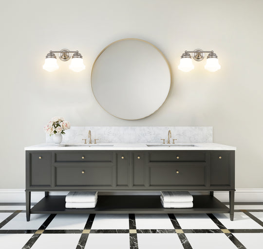2 Light Vanity This timeless collection is inspired by Mid-Century aesthetics. The schoolhouse glass serves as the focal point of this design with its unique profile and diffused light. The classic lines complement a variety of...Regular price $140.00 -