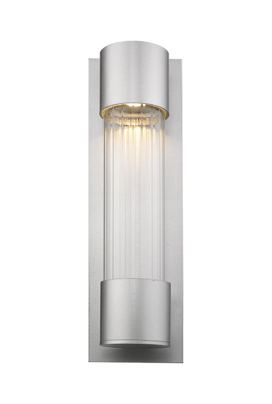 Sleek in silver, this small wall sconce enhances contemporary decor with a cool, crisp look. Clear optic glass ensures true illumination while a cylinder silhouette and bold end caps catch the eye.Regular price $458.00 -