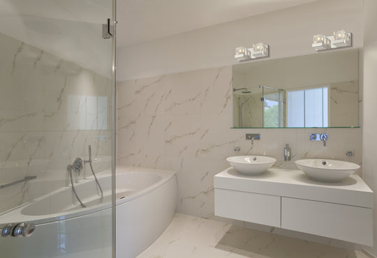 2 Light Vanity Modern and sleek, the Fallon collection of vanity fixtures are suitable for contemporary types of décor. Geometric, smooth crystal glass shades and a clean Chrome finish ensure maximum light output. Available in several...Regular price $97.50 -