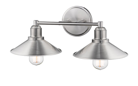2 Light Vanity --- A pair of hood shades creates a stylish balanced look in this two-light vanity fixture. Embellish a bathroom sink space with this elegant element crafted from brushed nickel steel and showcasing charming...Regular price $94.90