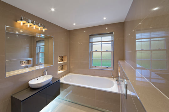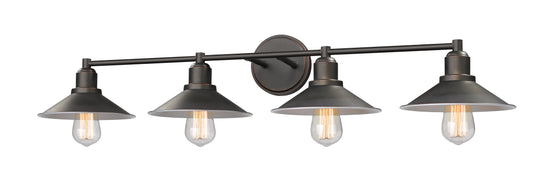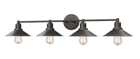 4 Light Vanity --- This four-light vanity fixture delivers a dynamic look that frames a master en suite sink in style. Embrace the rich olde bronze finish steel frame and hood shades that build a suitable...Regular price $170.30 -