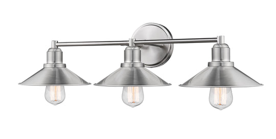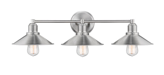 3 Light Vanity --- Call attention to a custom designed bath sink with this three-light vanity fixture. Sleek brushed nickel finish steel offers an authentic charm to a trio of hood shades and sweet vintage bulbs...Regular price $135.20 -