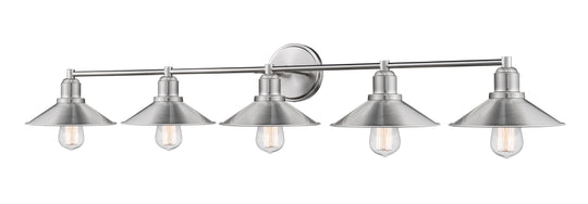 5 Light Vanity --- This elegant five-light vanity fixture positions itself as a marquee design element in a master en suite. Enjoy the antiqued effect with modern appeal, and find versatile beauty in a brushed nickel...Regular price $222.30