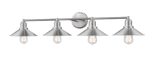 4 Light Vanity --- Finish the sophisticated ambiance of a custom designed master en suite with this stylish four-light vanity fixture. A collection of charming hood shades and a mounting bar in brushed nickel finish steel...Regular price $179.40 -
