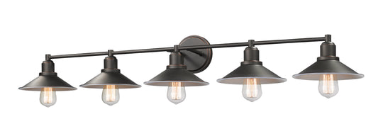 5 Light Vanity --- Design a stylish master en suite around the dynamic silhouette of this five-light vanity fixture. Luscious olde bronze finish steel creates a balanced mount and frame with hood shades and charming vintage...Regular price $211.90 -