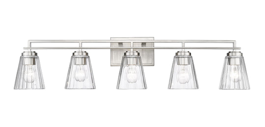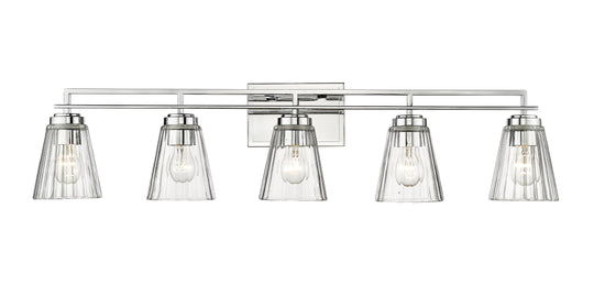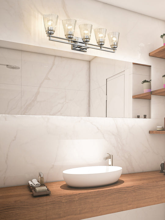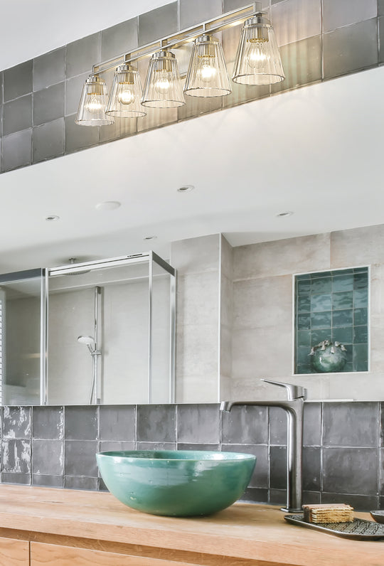 5 Light Vanity With its subtlety ribbed glass shades and clean modern lines, the simple beauty of the Lyna vanity series will enhance a wide variety of bath and powder room designs. Lyna is available in...Regular price $440.00 -