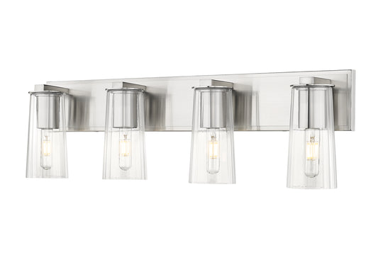 4 Light Vanity The Titus vanity series makes a bold fashion statement with tapered clear glass shades and tubular bulbs. Rings of light with the option to have the glass shade positioned up or down –...Regular price $294.00 -