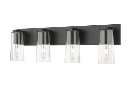 4 Light Vanity The Titus vanity series makes a bold fashion statement with tapered clear glass shades and tubular bulbs. Rings of light with the option to have the glass shade positioned up or down –...Regular price $330.00 -