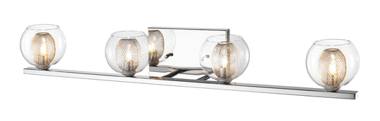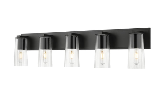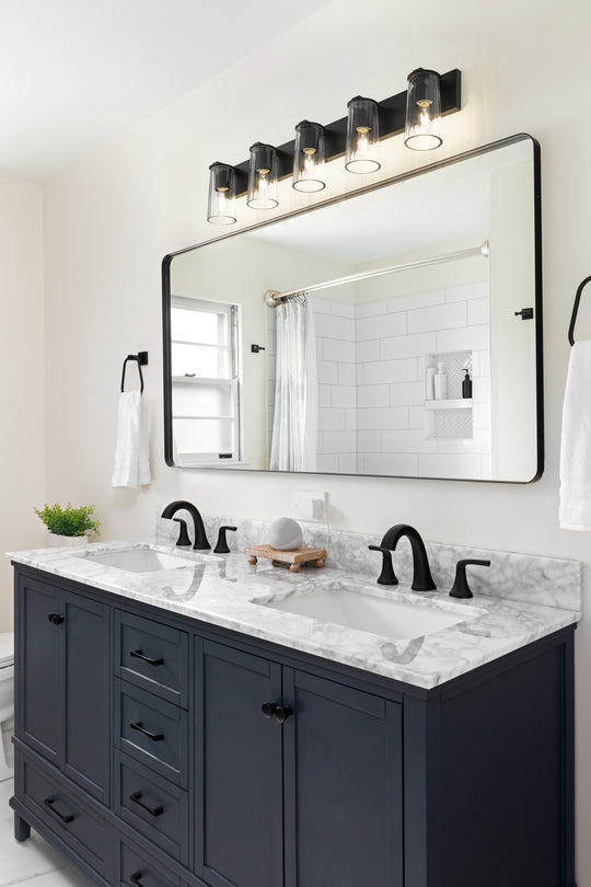 5 Light Vanity The Titus vanity series makes a bold fashion statement with tapered clear glass shades and tubular bulbs. Rings of light with the option to have the glass shade positioned up or down –...Regular price $404.00 -