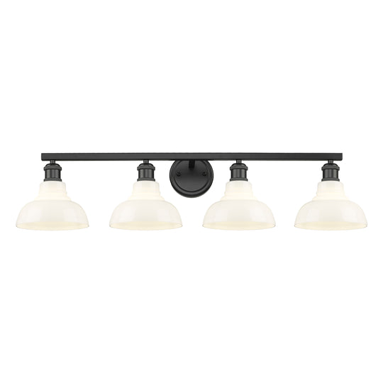 Yep by Golden Lighting Carver 4-light Vanity in Matte Black and Vintage Milk Glass