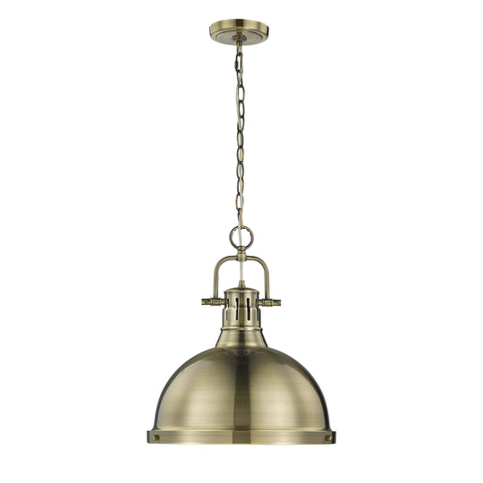Yep by Golden Lighting Duncan 1-light 14in Chain Hung Pendant in Aged Brass