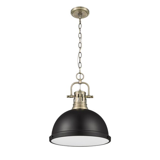 Yep by Golden Lighting Duncan 1-light 14in Chain Hung Pendant in Aged Brass and Matte Black shade