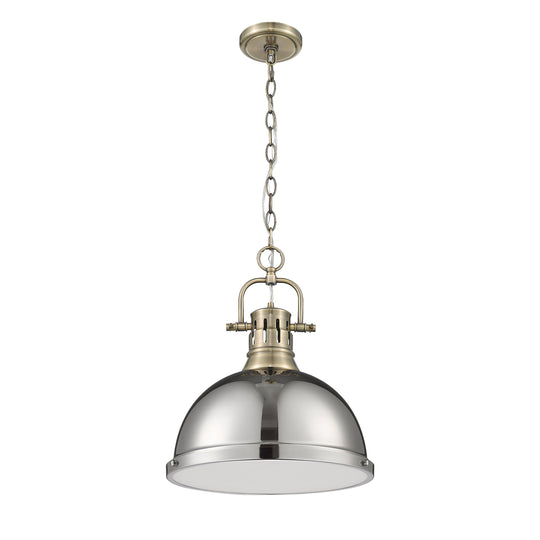 Yep by Golden Lighting Duncan 1-light 14in Chain Hung Pendant in Aged Brass and Chrome shade