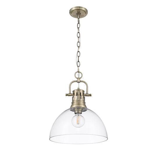 Yep by Golden Lighting Duncan 1-light 14in chain hung Pendant in Aged Brass and Clear Glass