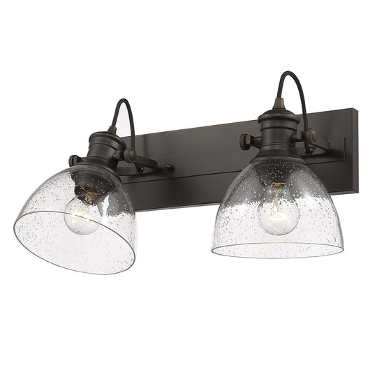 Yep by Golden Lighting Hines 2-light Vanity in Rubbed Bronze and Seeded Glass