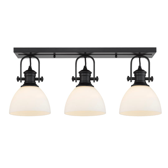 Yep by Golden Lighting Hines 3-light Semi-Flush Mount in Matte Black and Opal Glass
