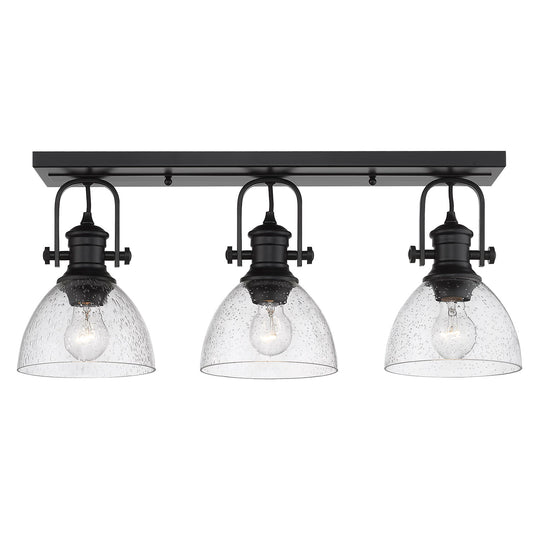 Yep by Golden Lighting Hines 3-light Semi-Flush Mount in Matte Black and Seeded Glass