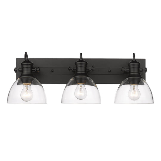 Yep by Golden Lighting Hines 3-light Vanity in Matte Black and Clear Glass