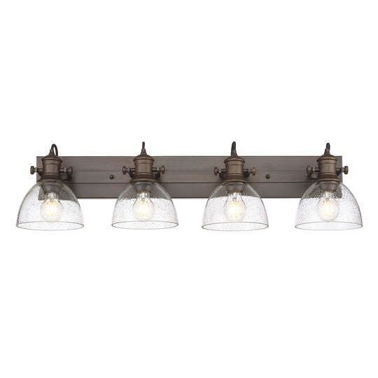 Yep by Golden Lighting Hines 4-light Vanity in Rubbed Bronze and Seeded Glass