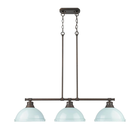 Yep by Golden Lighting Duncan 3-light Island Light in Rubbed Bronze and Seafoam shade