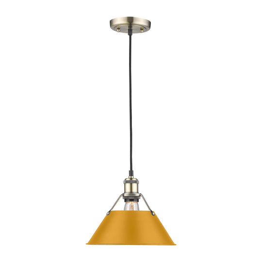 Yep by Golden Lighting Orwell 1-light 10in Pendant in Aged Brass and Auric Yellow shade