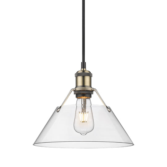 Yep by Golden Lighting Orwell 1-light 10in Pendant in Aged Brass and Clear Glass