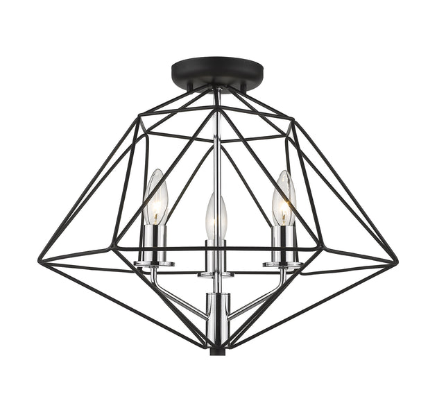 Geo Three Light Semi Flush Mount in Matte Black / Chrome