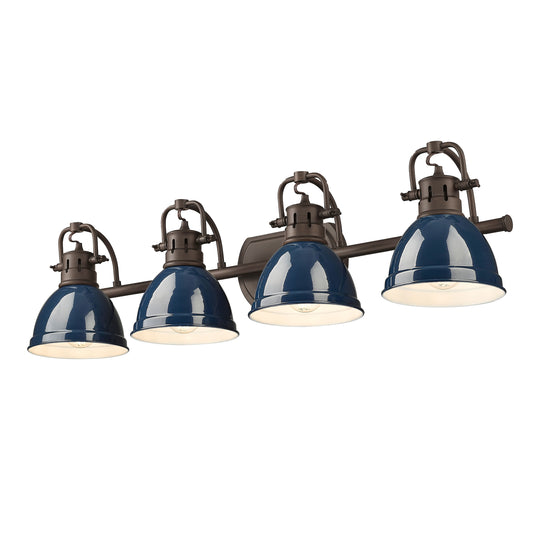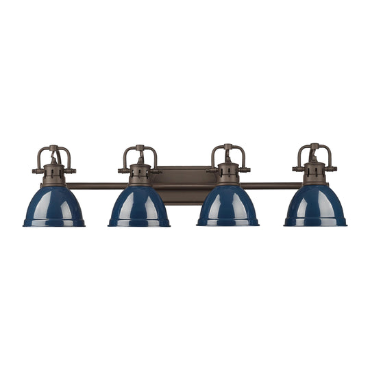 Yep by Golden Lighting Duncan 4-light Vanity in Rubbed Bronze and Navy Blue shade