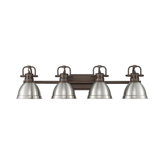Yep by Golden Lighting Duncan 4-light Vanity in Rubbed Bronze and Chrome shade