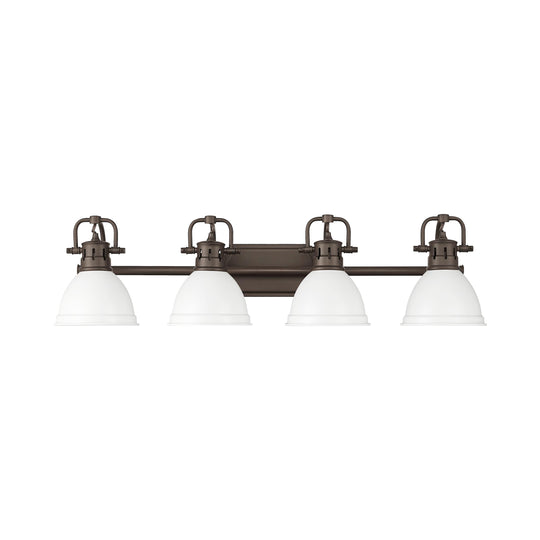 Yep by Golden Lighting Duncan 4-light Vanity in Rubbed Bronze and Matte White shade
