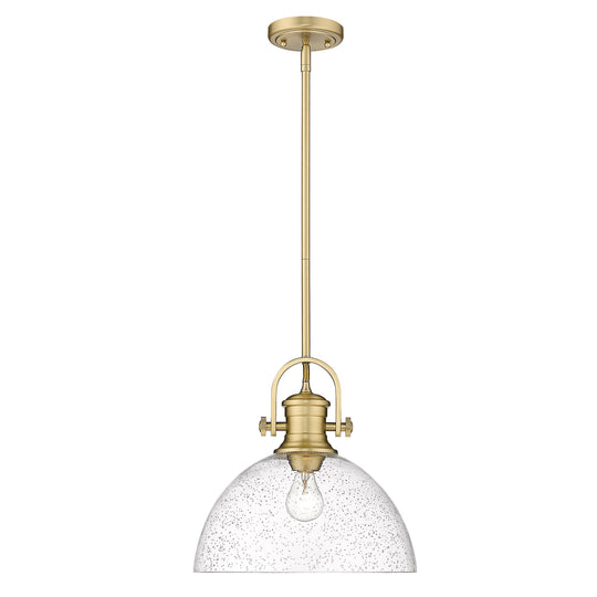 Yep by Golden Lighting Hines 1-light 14in Pendant in Brushed Champagne Brass and Seeded Glass
