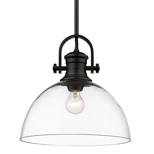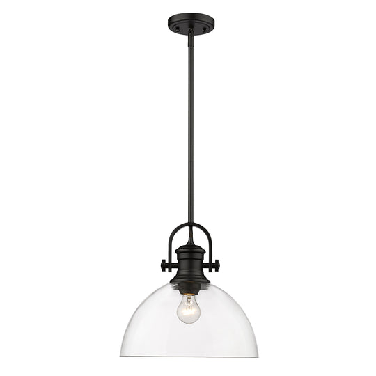 Yep by Golden Lighting Hines 1-light 14in Pendant in Matte Black and Clear Glass