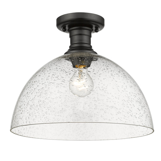 Yep by Golden Lighting Hines 1-light 14 in Semi-Flush Mount in Matte Black and Seeded Glass