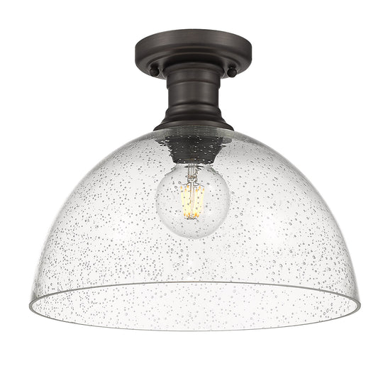 Yep by Golden Lighting Hines 1-light 14 in Semi-Flush Mount in Rubbed Bronze and Seeded Glass