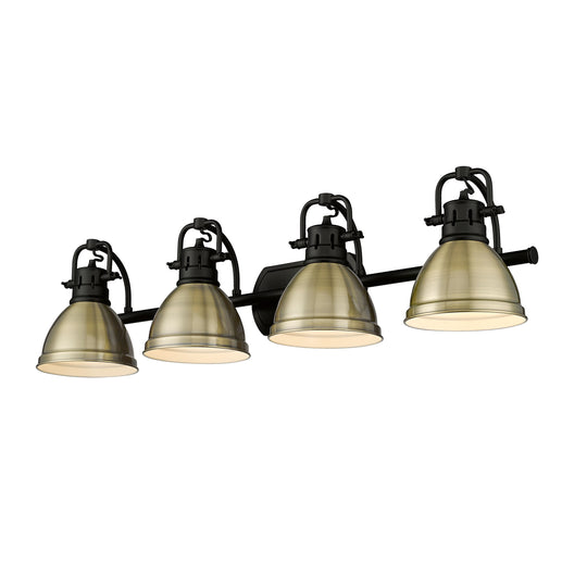 Yep by Golden Lighting Duncan 4-light Vanity in Matte Black and Aged Brass shade