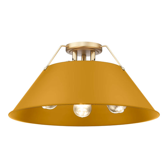 Yep by Golden Lighting Orwell 3-light Flush Mount in Brushed Champagne Brass and Auric Yellow shade