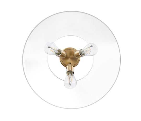 Yep by Golden Lighting Orwell 3-light Flush Mount in Brushed Champagne Brass and Clear Glass