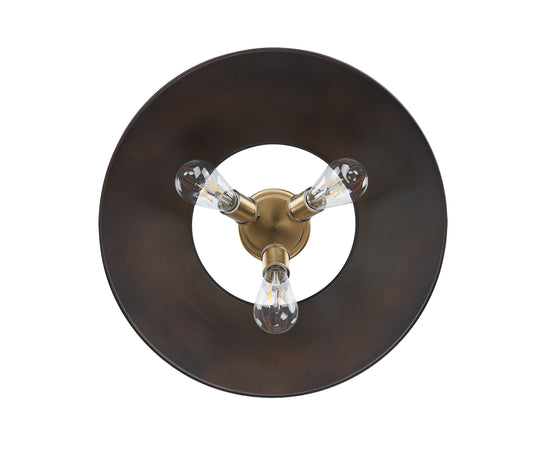 Yep by Golden Lighting Orwell 3-light Flush Mount in Brushed Champagne Brass and Rubbed Bronze shade